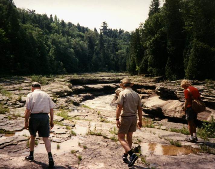 geologists walking the Deschambault Limestone type section (Middle Ordovician),