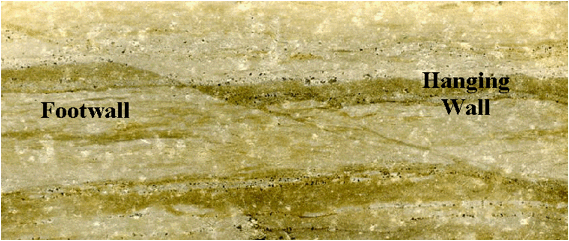 Reverse fault (above & below; cross-section view; field of view: 2.4 cm across)