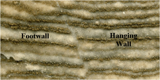 Normal fault (above & below; cross-section view; field of view: 3.1 cm across)