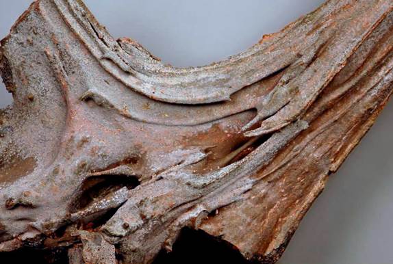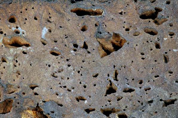 Vesicular basalt - cross-section of a lava tube ceiling.