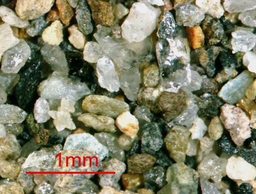 Fluvial quartz-rich sand from a dry creek bed a little north of the old