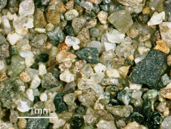 Modern lithic-quartzose fluvial sand from the Green River in Flaming Geyser State Park,