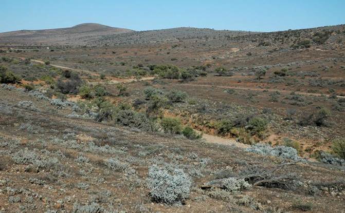Mernmerna, in the South Australian Outback, showing dry creek bed (middle left