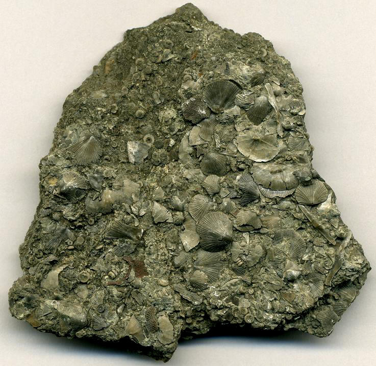 fossiliferous - mostly brachiopod shells, some bryozoans, some crinoid stem
