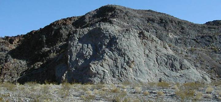 Large mudmound (bioherm) in the Tin Mountain Limestone. Much of the Tin
