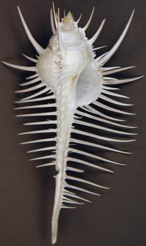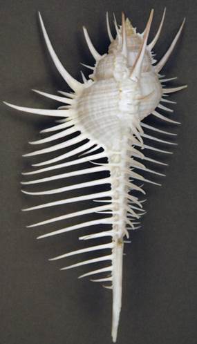 Murex pecten Lightfoot, 1786 shell (12.8 cm tall) - abapertural view (left) &