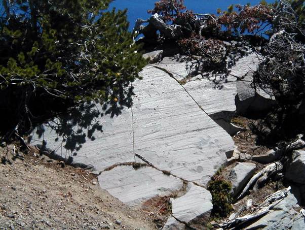 Glacial striations on andesite at rim of Crater Lake Caldera.