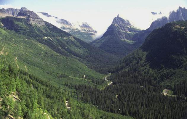 U-shaped valley carved by mountain glaciers (a.k.a. valley glaciers; a.k.a. alpine glaciers) during the Pleistocene Ice Age.