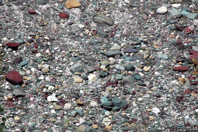 Till - Pleistocene-aged glacial till in roadcut outside Glacier National Park, Montana, USA. Till consists of poorly-sorted, coarse-grained, poorly-bedded to nonbedded glacial deposits. With burial and lithification, till deposits become glacial conglomerates, or tillites.
