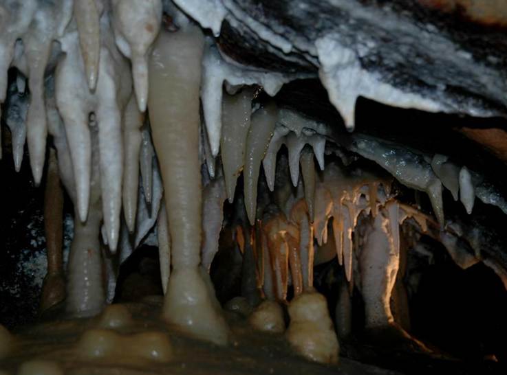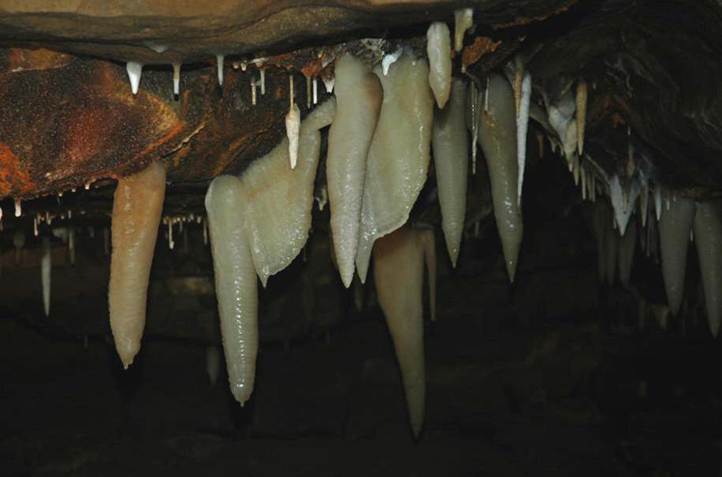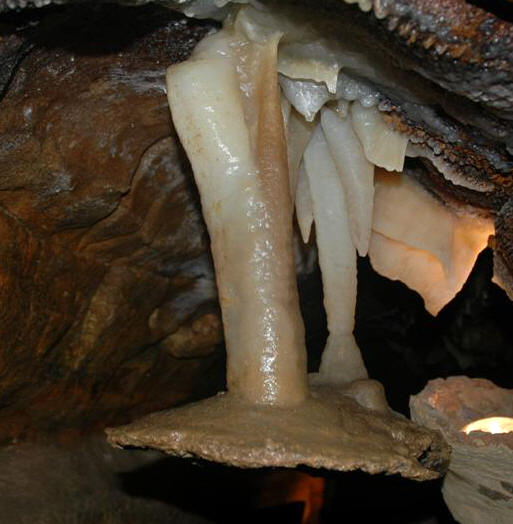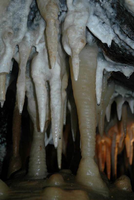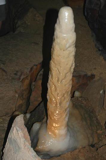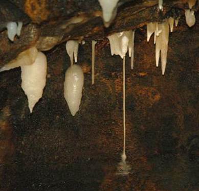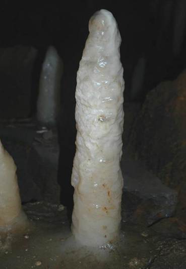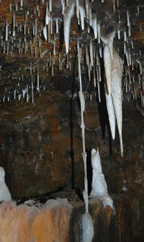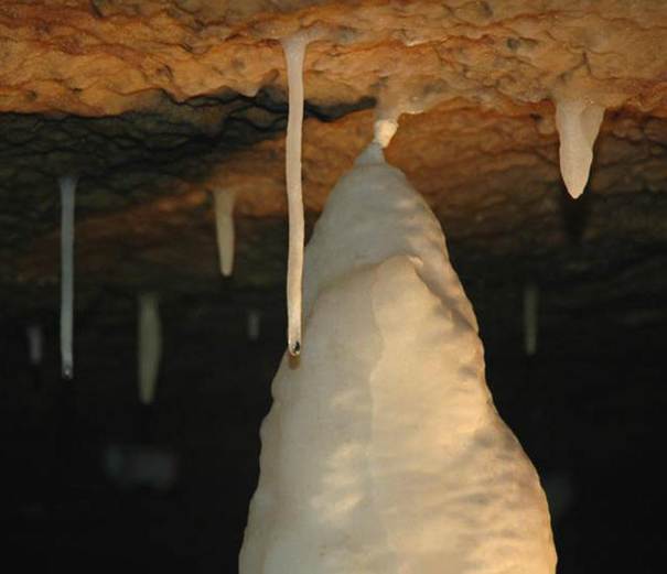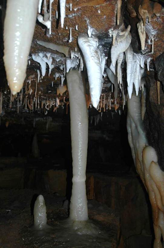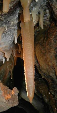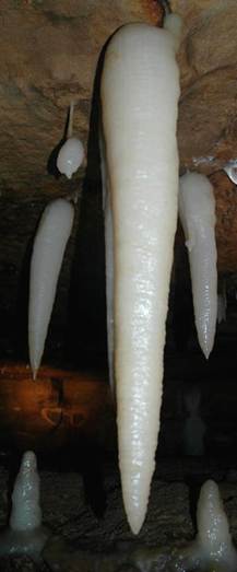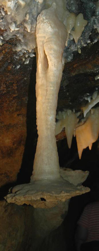 Above: Soda straw column in Ohio Caverns having an irregular width.