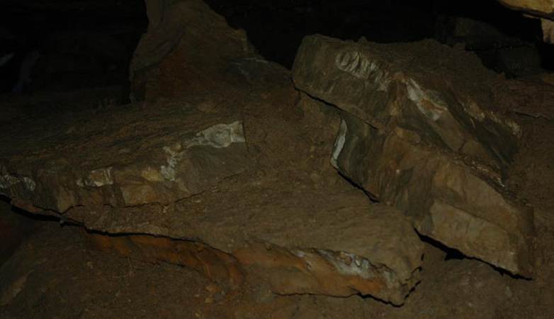 Above & below: Blocks of cherty limestone that have collapsed from the ceiling of Ohio Caverns.