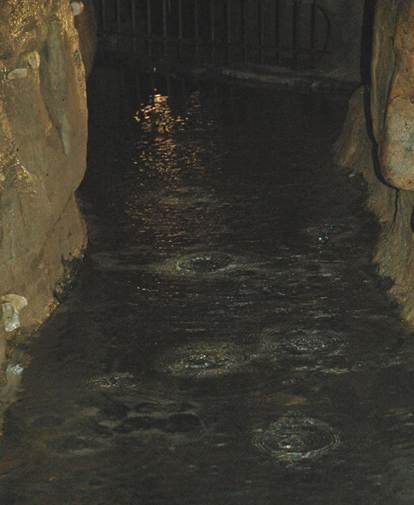 Below: Dripping & standing water can be observed in many of the passages at Ohio Caverns, which is still an actively-forming cave.