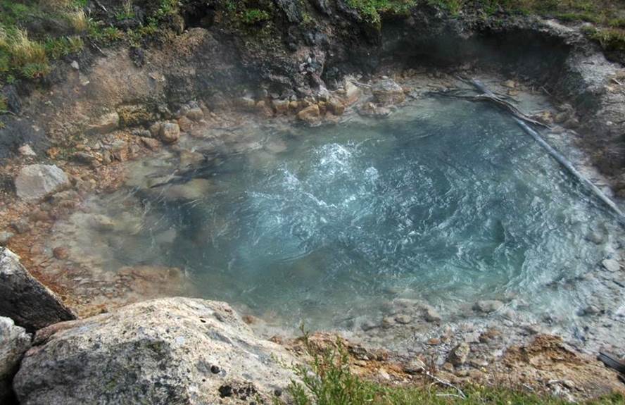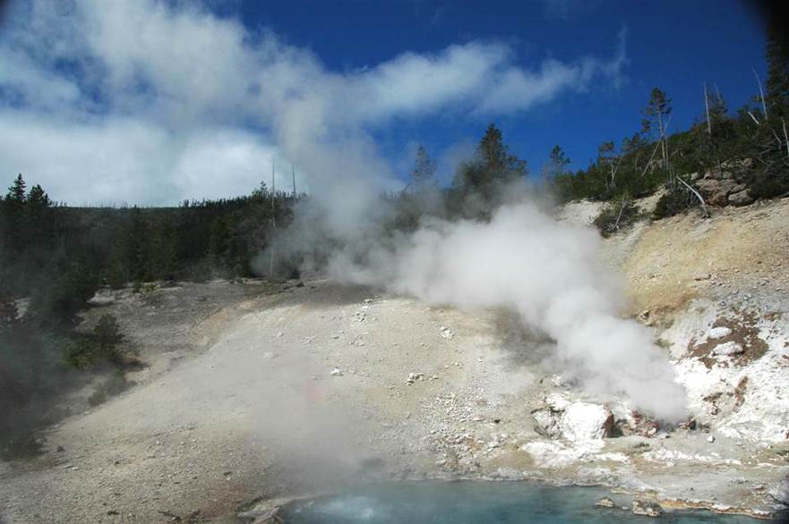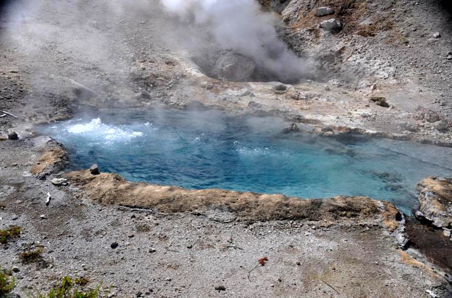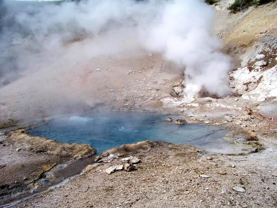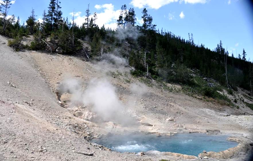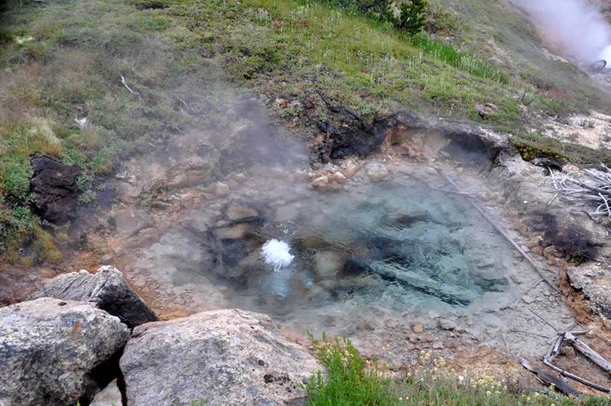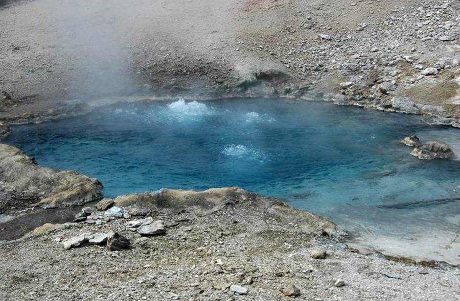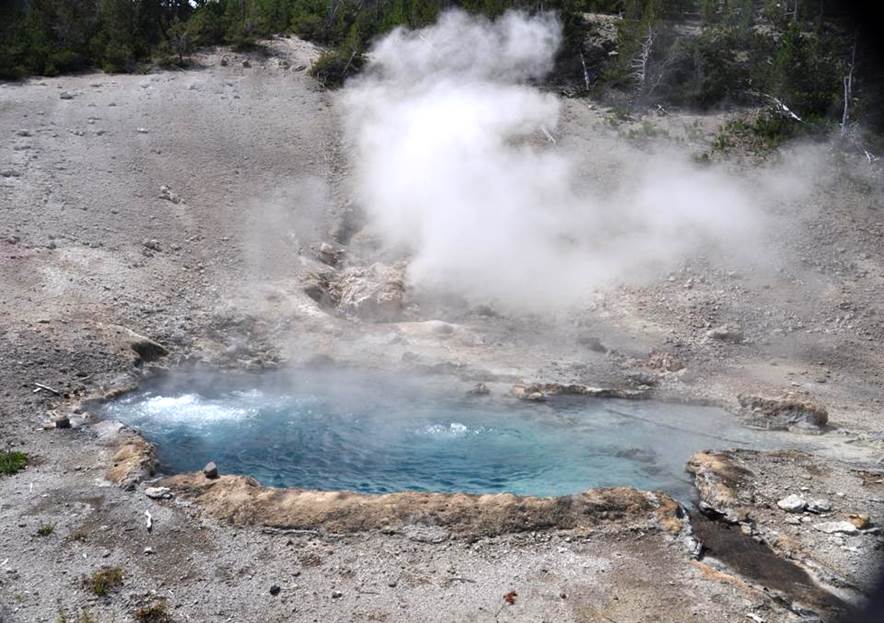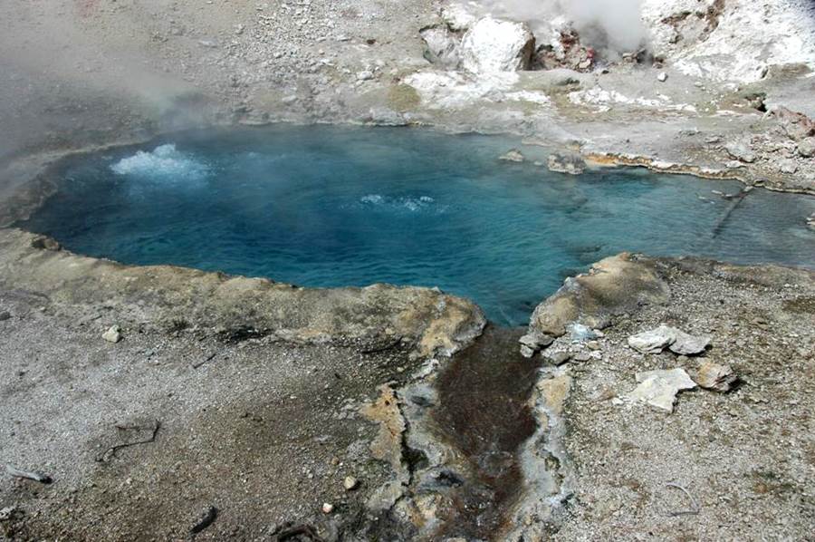 hot spring that has only erupted after the 1959 Hebgen Lake Earthquake. Its pool has transparent, bluish water