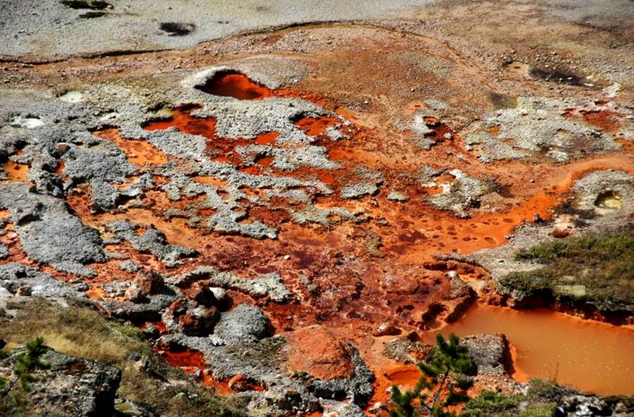 on Yellowstone’s Paintpot Hill are a classic example of mud pots. Mud pots are scarce hydrothermal features