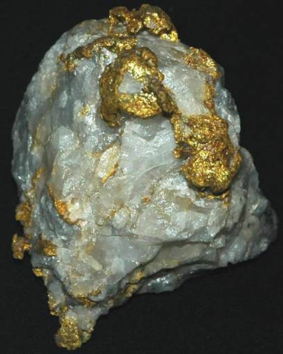 variably-shaped nuggets. It most commonly occurs in hydrothermal quartz
