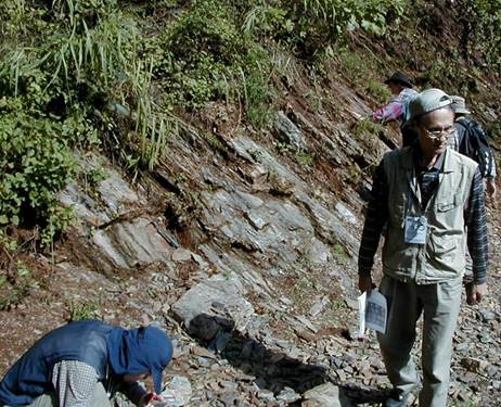 mudshales at Gonggiri. Person at right is Sung Kwun Chough, a geology