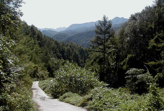 narrow mountain “road”. The sloping forest floor adjacent to the cut also