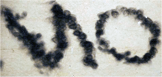 of a series of individual “dabs” of dark candle smoke. Much of the