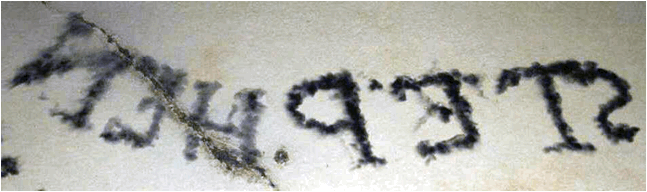 ceiling writing here is backward. Writing was done using a mirror on the