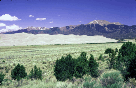 Great Sand Dunes on the eastern edge of the Rio Grande Rift Valley