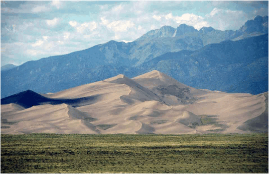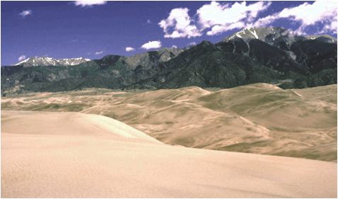 Great Sand Dunes and Sangre de Cristo Mountains in the background.