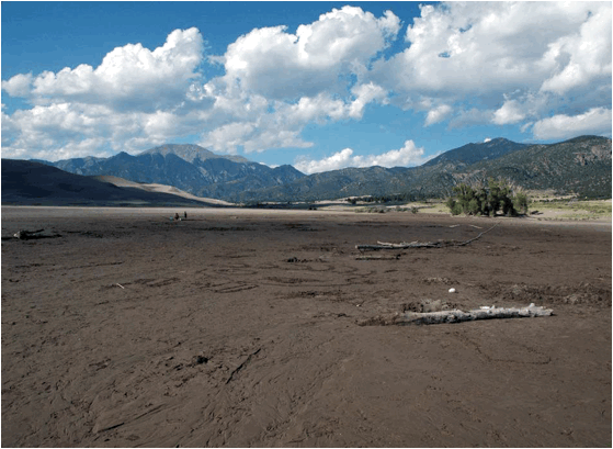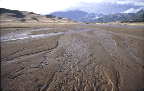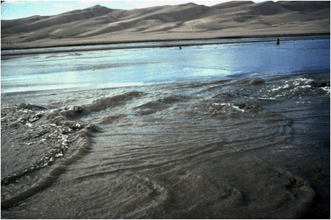 Medano Creek along the southern side of the Great Sand Dunes dune field.