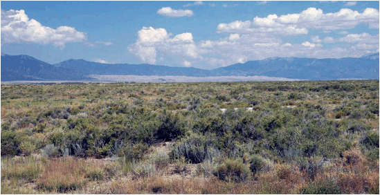 with the Sangre de Cristo Mountains in the distance.
