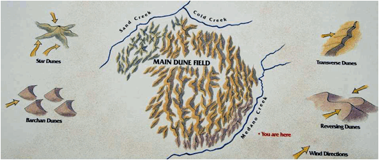 Map of Great Sand Dunes dune field showing location of