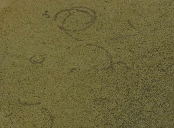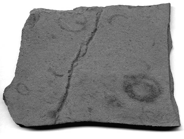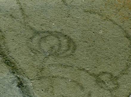 Grypania spiralis ribbons on finely-laminated taconitic mudshale (field