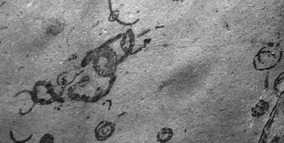 Grypania spiralis ribbons on taconite (field of view ~5.4 cm across).