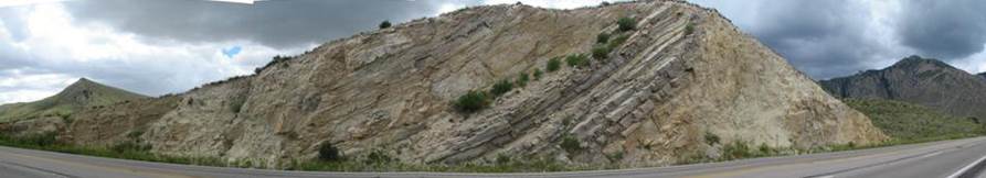 tilted Permian limestones with a couple of obvious fault zones. Be sure