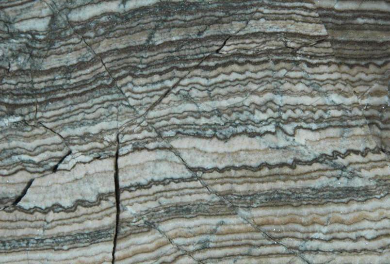 banded gypsum-calcite rocks of the Castile Formation, deposited during