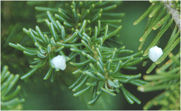 Hailstones - small hailstones (<1 cm) caught on branches of a spruce tree at