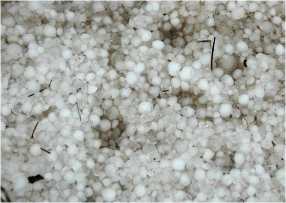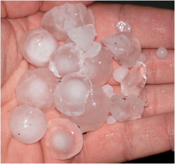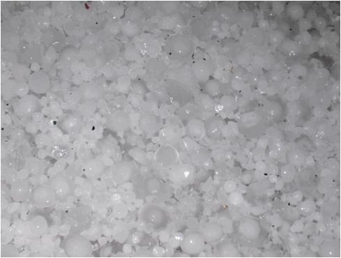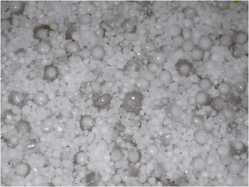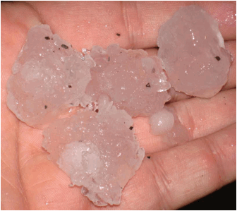 bubbles of air). Many of the larger hailstones (~1.5 to 2.5 cm in