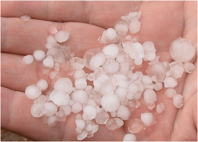 range in size from about half-a-centimeter to >20 cm (very large hailstones,