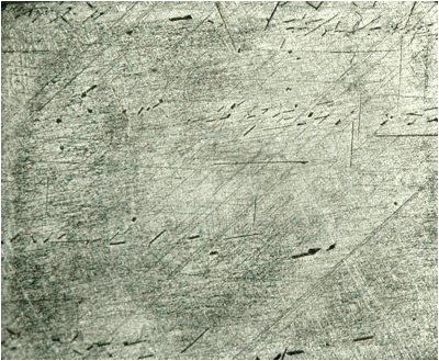 cut, polished, and nitric acid-etched slice of hexahedrite. Unlike