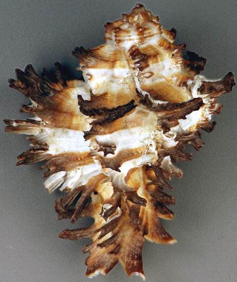 The muricid snails have highly spinose shells. Shown