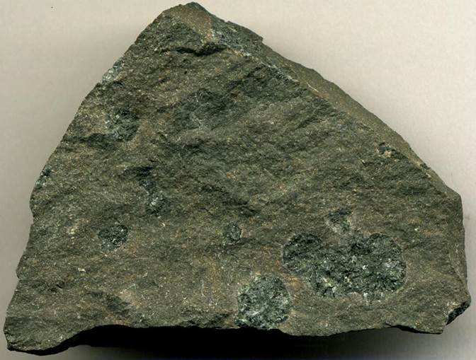 patches in the sample shown below) - such rocks are called spotted hornfels.