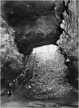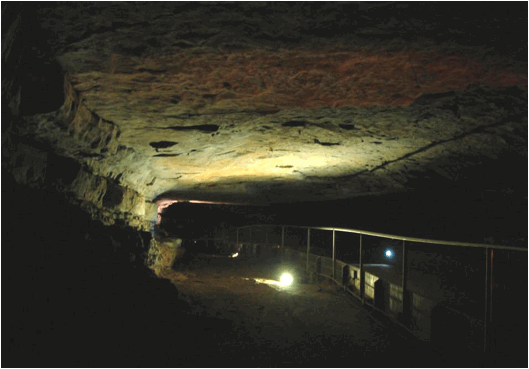 Cave's historic entrance and the Rotunda (= 1st cave room). It occurs at