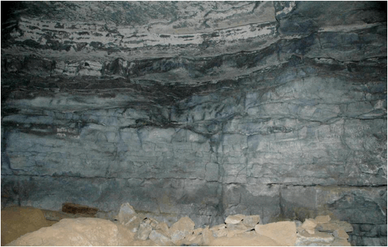 Girkin Limestone, the same unit exposed along the entrance stairway at the cave