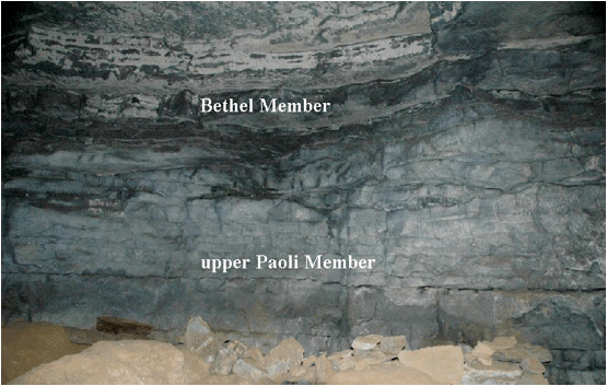 the Bethel. The gray limestone beds below that are the upper Paoli