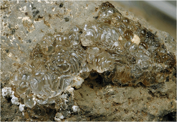 edges of the hyalite mass is the rare mineral carbonate-rich fluorapatite