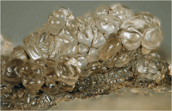 substance on a rock. This beautiful material is hyalite opal (a.k.a.
