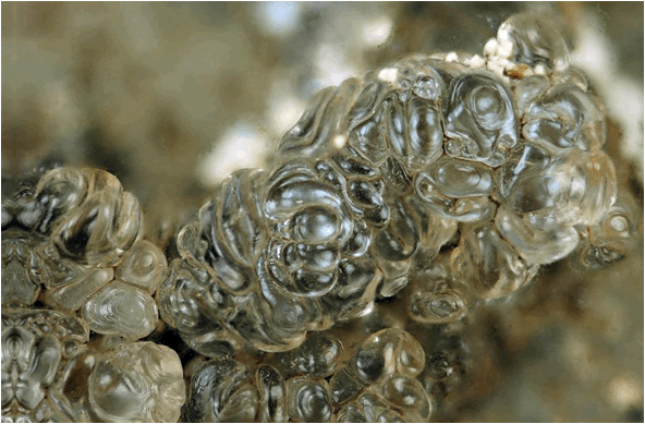 Hyalite opal (clear) (field of view ~2.05 cm across) from the upper Doupov Volcanic
