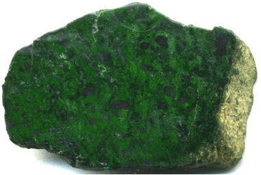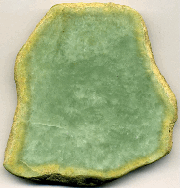 light brown-colored rim is a weathering rind. Jadeitite (= jadeite jade)