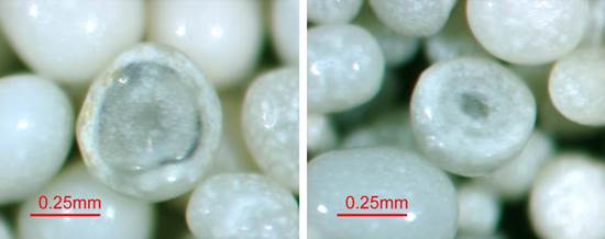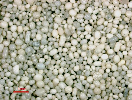 ooids) are typically whitish to off-white to grayish colored, very well-rounded