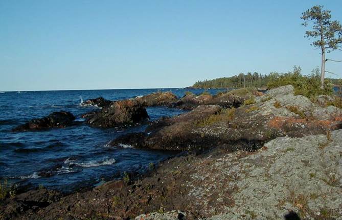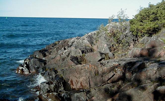outcrops of Lake Shore Traps flood basalts at Eagle Harbor Lighthouse, on the