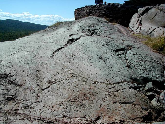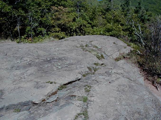 The outcrop is glacially smoothed & grooved.