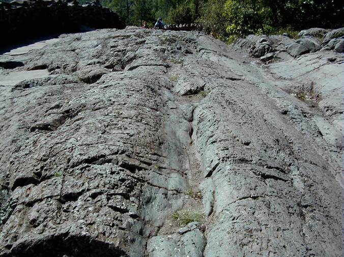 The lava beds here have nice glacial grooves and striations.