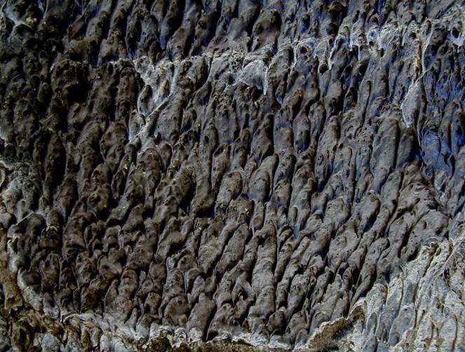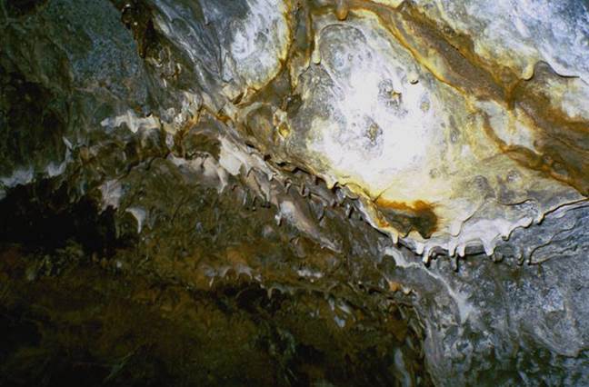 coloration of the smooth-surfaced lavacicles abundant on the walls &